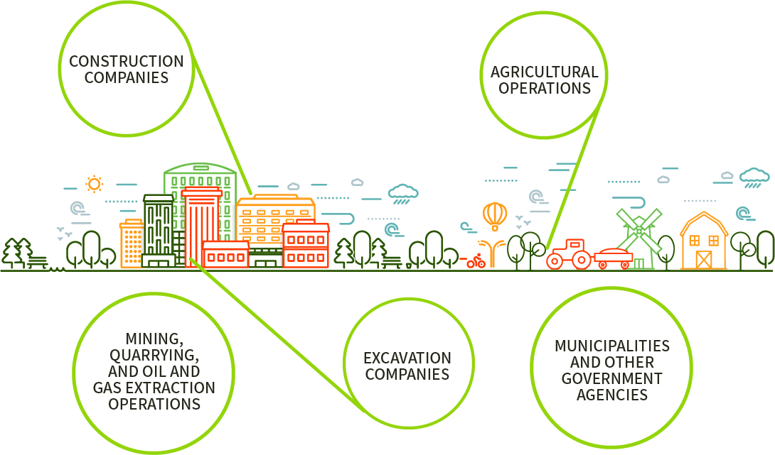 While some heavy equipment operators work in landscaping, this occupation is in demand across many industries and can be employed by:
